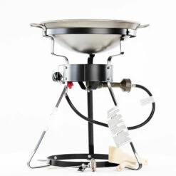 For fast and simple campsite meal prep, Camp Chef’s Everest High-Output Two Burner Stove provides total functionality when trying to cook up a meal in the middle of a desolate forest or wooded area. A nickel-coated steel cooking grate ensures durable use, strong enough to hold heavy pots of water. Three- sided wind barrier features enable fast and efficient cooking, allowing you to get the job done without having to reignite the flame. A push-button ignition offers reduced prep time, allowing a faster cook time so you can tame your hunger even sooner than expected. The Stainless steel drip tray provides a fast and easy clean up so you can get back to enjoying the surrounding nature and scenery. A locking lid and carry handle provide hassle-free transportation and portability, perfect when preparing the necessary equipment needed for a long weekend out in the wilderness. Also includes a 1 lb. propane cylinder. Weight: 12 lbs. Dimensions: 13.5″ L x 23.5″ W x 4″ H. Imported.