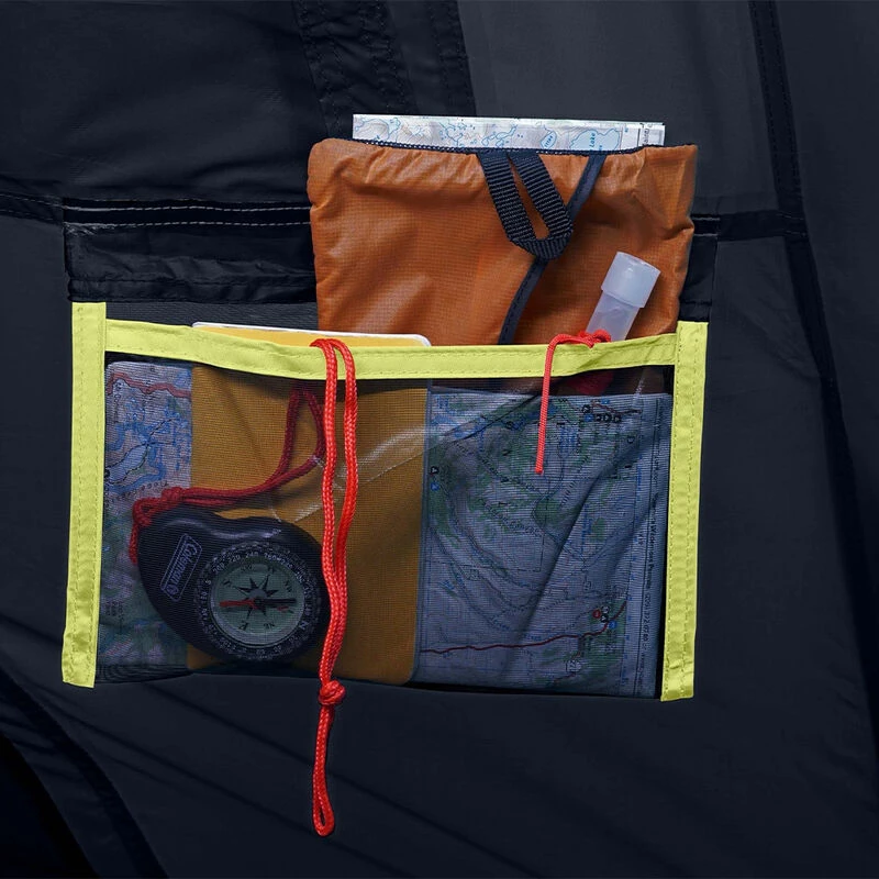• Attached rainfly vents hot air, provides protection from the elements, and won’t get lost