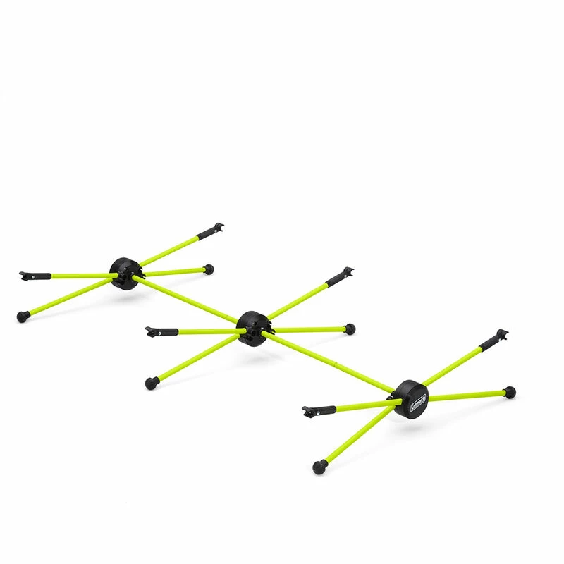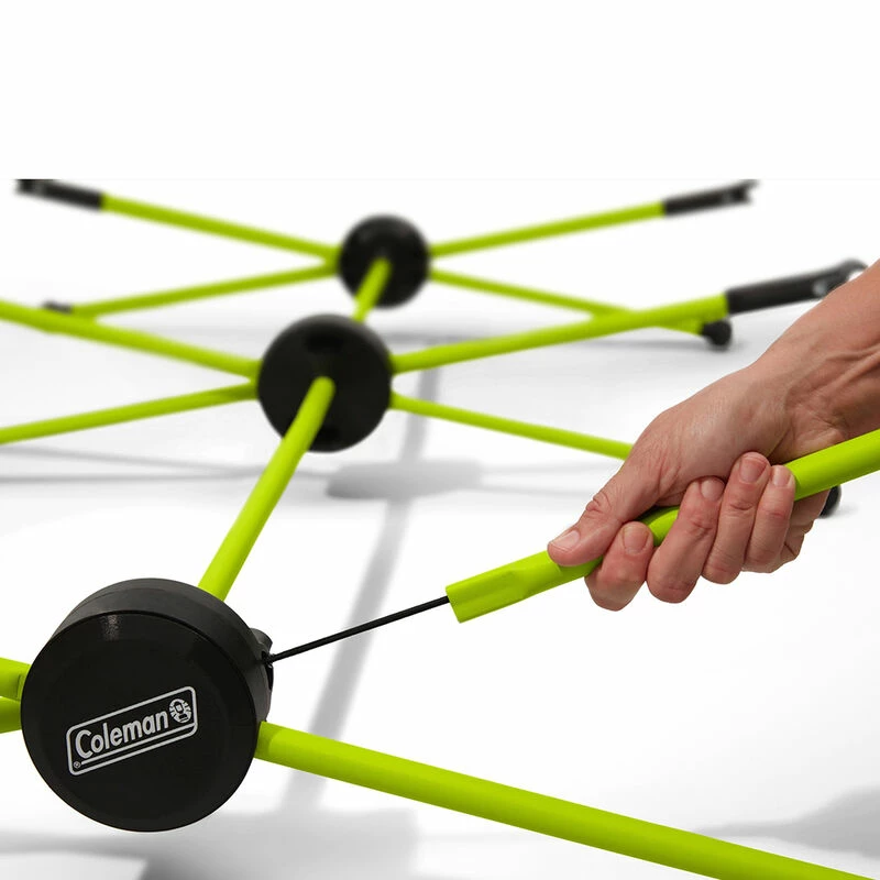• Coleman SpyderHub technology features spring-loaded hubs that rotate to attach frame and keep tension on the fabric for easier setup and takedown
