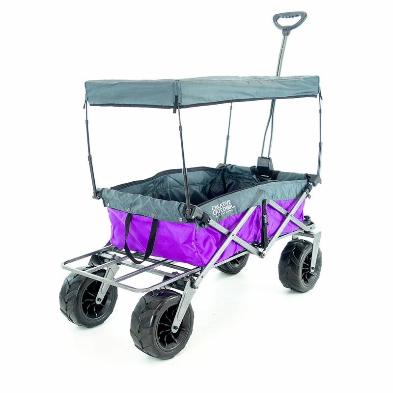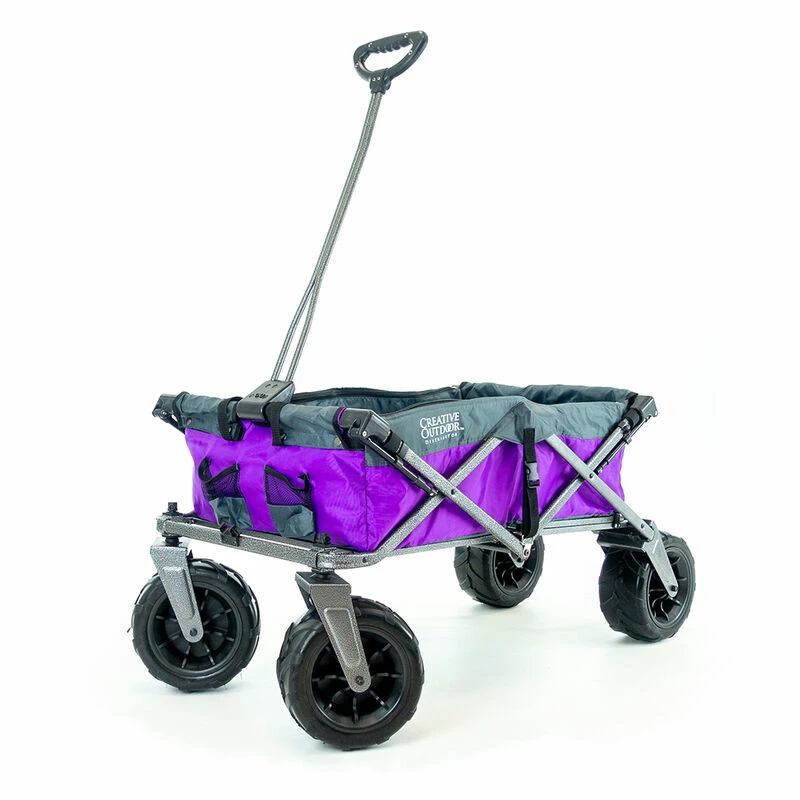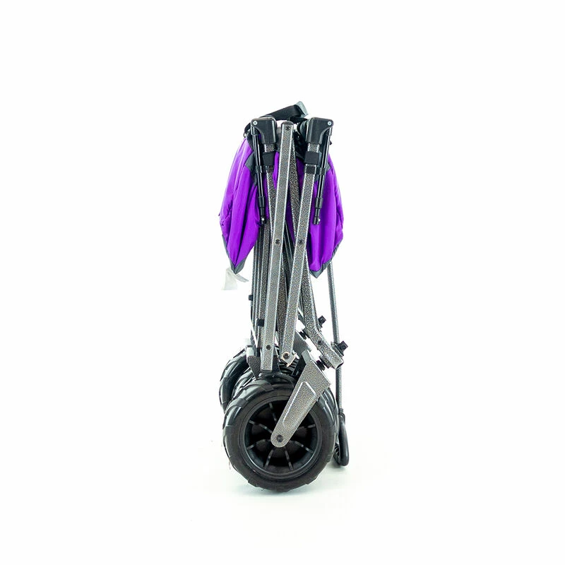 All-terrain wheels come equipped with ball bearings for decreased rolling resistance and increased load capacity. You can smoothly glide across many surfaces including grass, dirt, concrete, pavement, and more. The front wheels swivel 360° to allow a tight turning radius and easily maneuver around obstacles and navigate the terrain. The bigger wheels dampen the bumps in your path so the precious cargo and passengers experience a smooth ride.