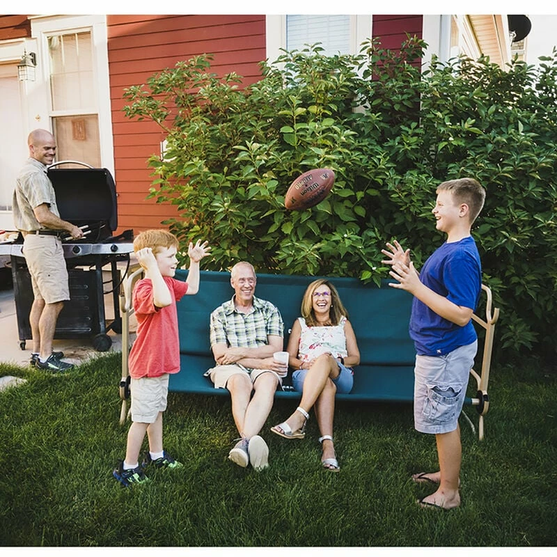 The robust, anti-rust steel frame has been engineered for durability and flexibility, providing a level sleeping surface even on uneven terrain. Unlike traditional cots on the market today the Disc-O-Bed L has no mid bar to get in-between you and a great night’s sleep.