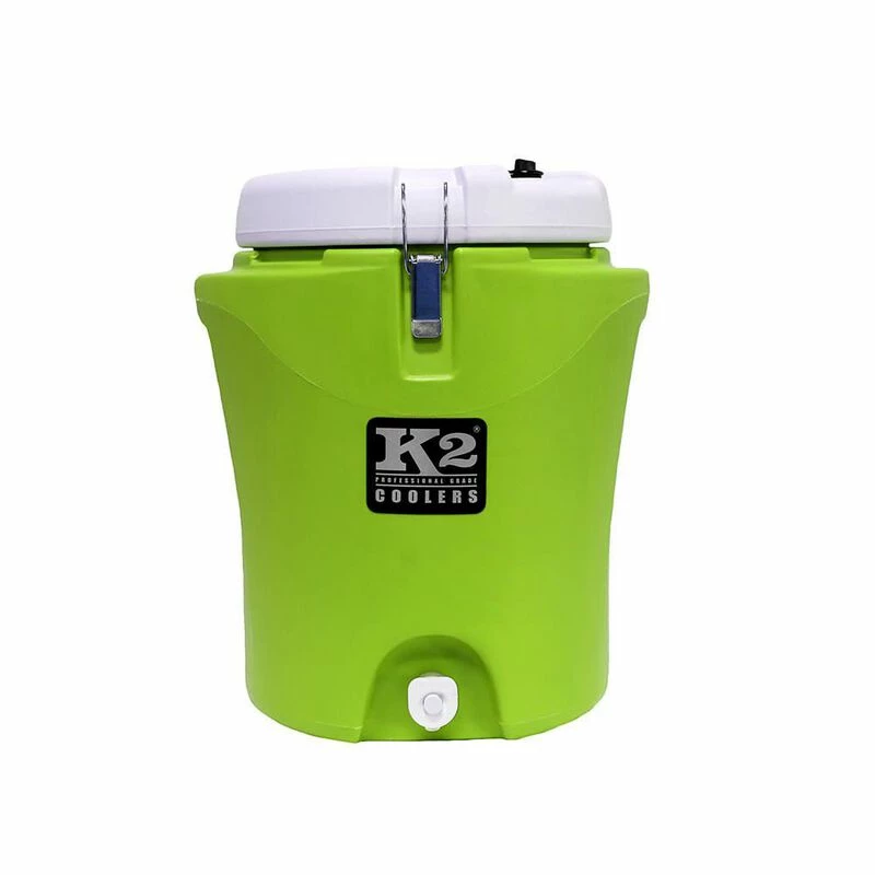 - K2 Coolers’ SUMMIT Series 5 Gallon Water Jug – Lime (base) & White (lid).
