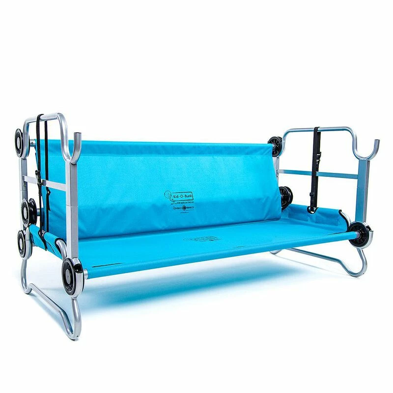 The end frame is rounded in design to alleviate ground sinking, add to the overall stability of the bunk system, protect floor coverings and tent floor surfaces. A number of add on accessories are available. Going to grandma’s for the summer just got a whole lot better – Kid-O-Bunk by Disc-O-Bed.