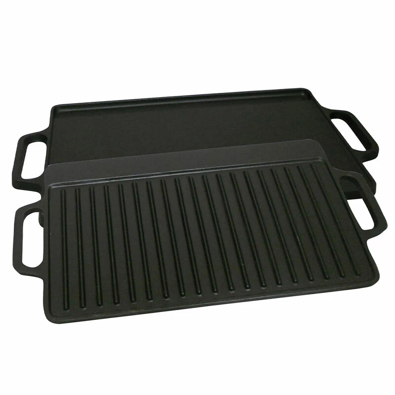 - Two-sided cast iron griddle is great for pancakes, bacon, steaks, and more