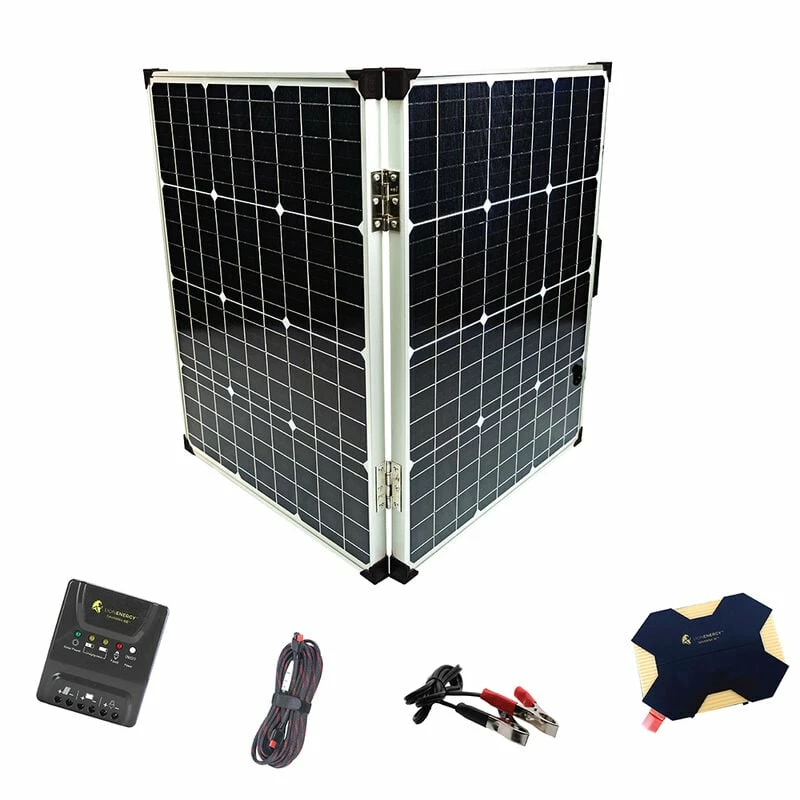 This durable, portable, and easy-to-connect 100W solar panel captures the power of the sun and transfers it to an energy storage device. The Lion 100 is made from monocrystalline cells with anti-corrosive, double-walled aluminum construction that lasts up to 20 years. It can have a max power output of 18V @ 5.56 amps, and you can link multiple panels together. It comes as a folded panel with an easy-to-carry handle.