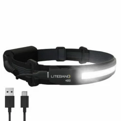 The Liteband ACTIV 400 LED Headlamp is the first 210° wide beam, low-profile headband-style headlamp. Lightweight with an adjustable strap, Litebands provide long-lasting comfort for all day wear. The headlamp delivers 400 lumens of ultra-bright light with an 1800 mAh lithium-ion USB-C rechargeable battery, and 36 hours of light on low setting. Features 5 light modes including high, med, low, red, and pulse for maximum versatility. With a weatherproof rating of IPX4, the ACTIV 400 is perfect for camping, hiking, running, fishing, and other outdoor activities. Professionals will enjoy the lightweight adjustable fit for hard hats and helmets.