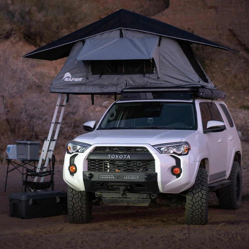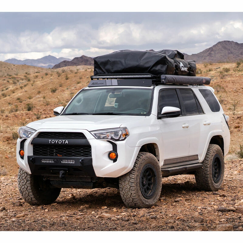 Note: The tent is designed to fit on most vehicles with aftermarket rack cross bars. We do not recommend mounting the tent directly to factory crossbars. Ensure your cross bars have a dynamic weight capacity that can support the weight of the tent (165 lbs) when installed, and a static weight of 600 lbs.