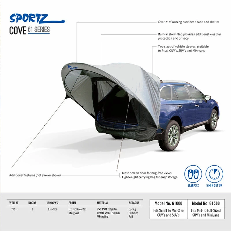 - Conveniently compact awning designed to fit minivans and full-size SUVs