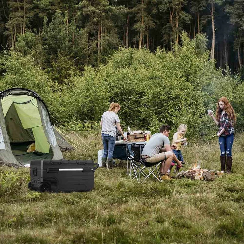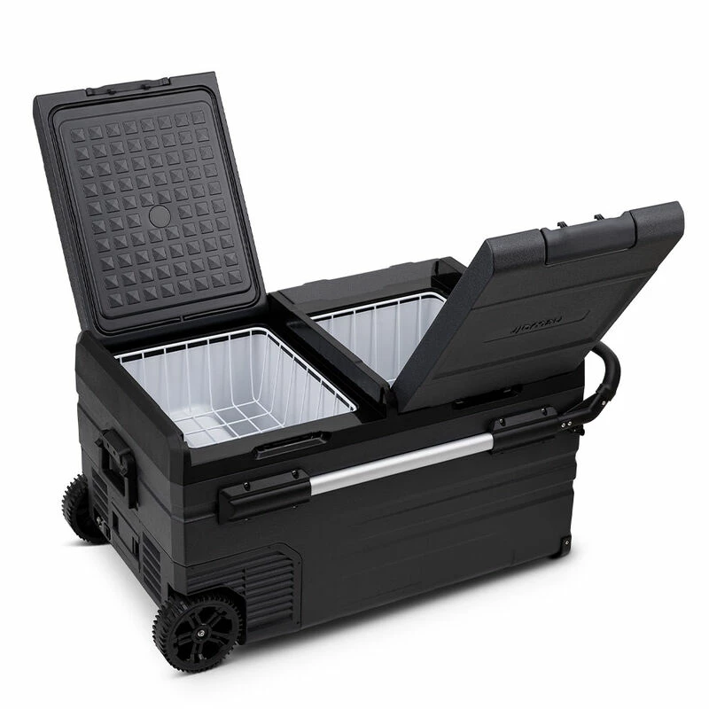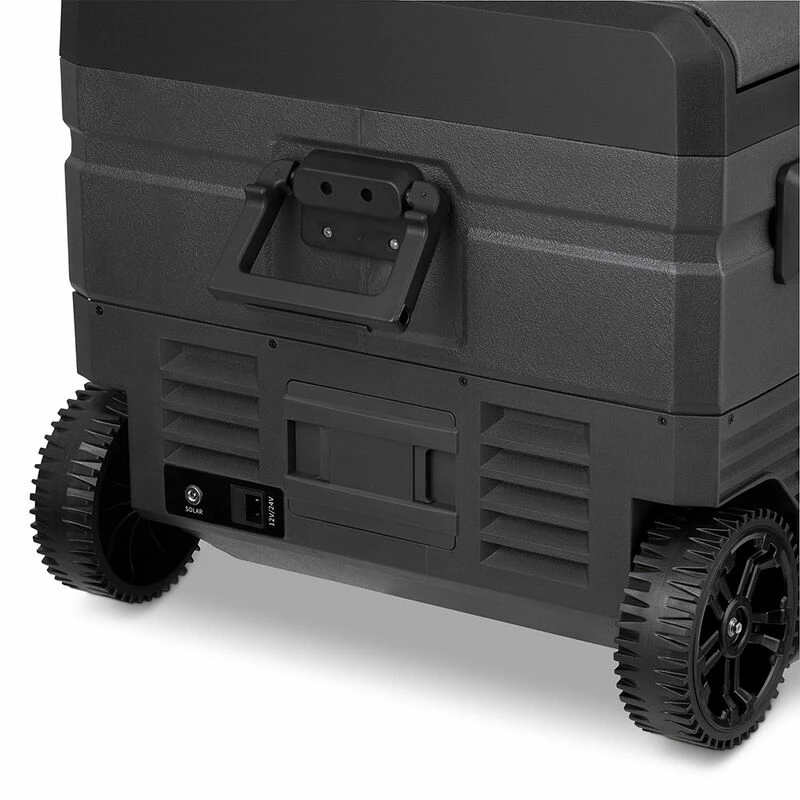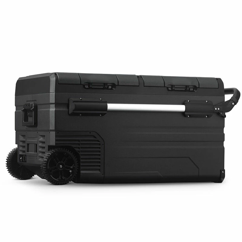 • Retractable handle and off-road wheels make it easy to use this 12v/24v car fridge anywhere.