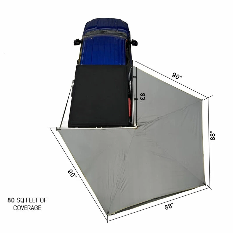 - Quick-deploying, one-man operation awning with 80 sq. ft. of shelter