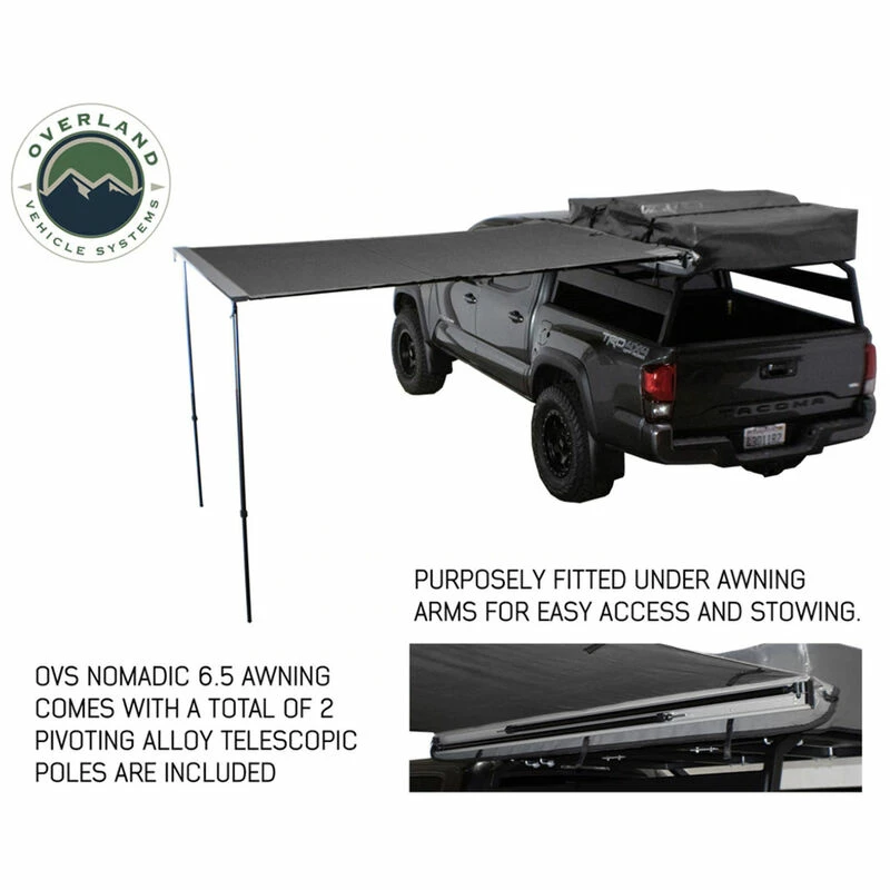 - Quick-deploying one-man operation awning gives you 69 sq. ft. of shelter