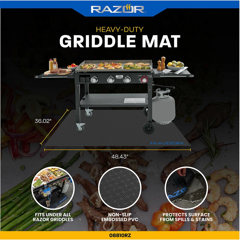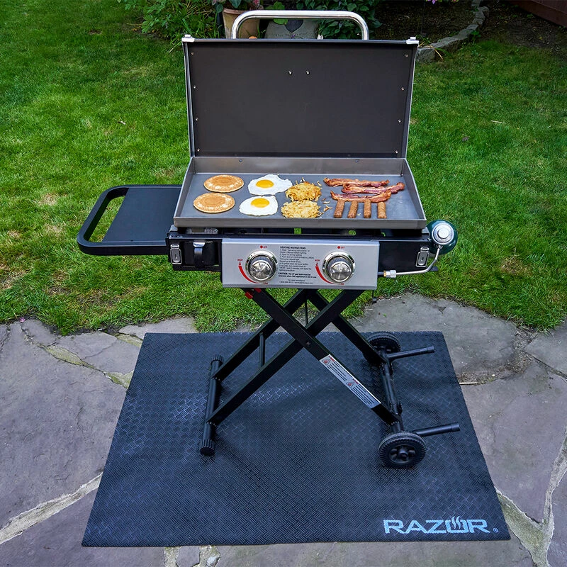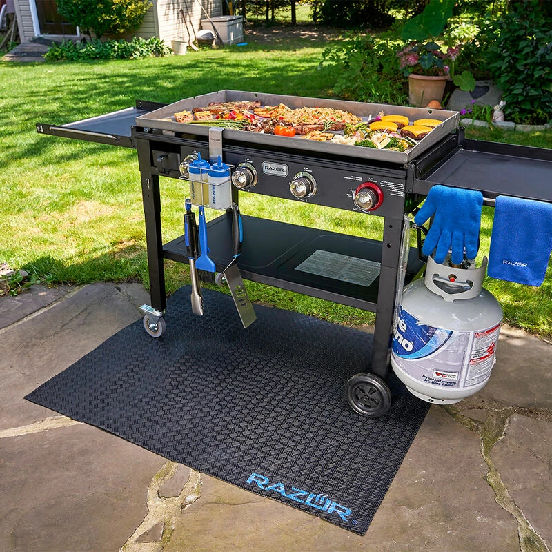 The Razor Heavy-Duty Griddle Mat is a great way to protect your deck or patio from spills or stains. Designed to fit under all Razor griddles, the embossed non-slip PVC mat is the solution to every griddler’s problem. Heat-resistant and easy to clean, it’s the perfect fit for your Razor griddle.
