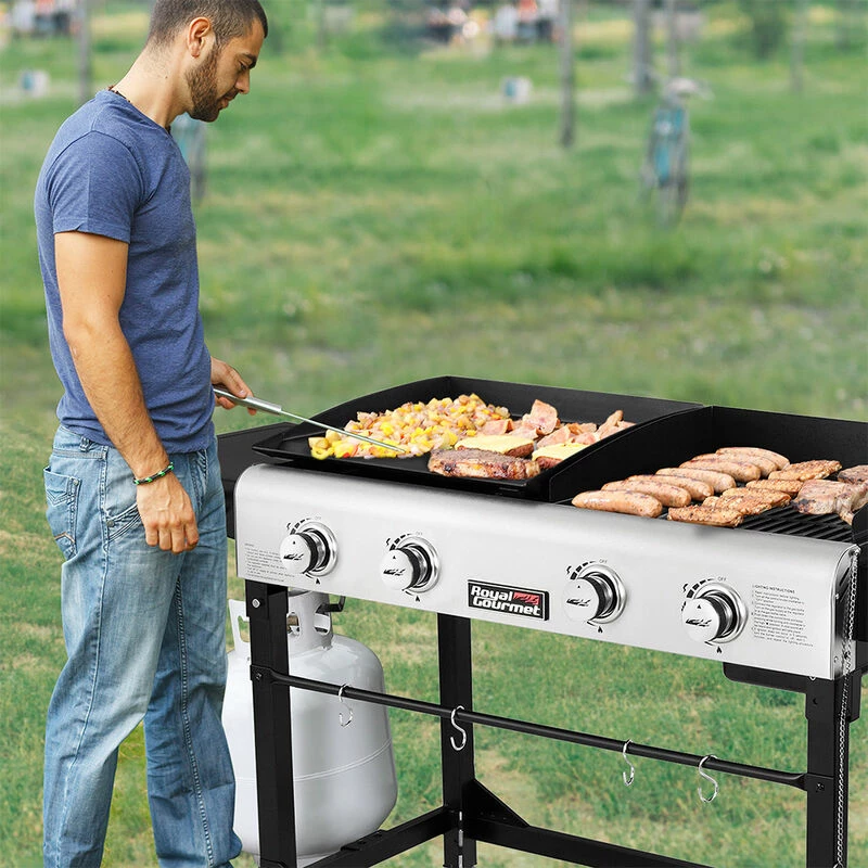 Cooking Versatility – With two different surfaces you can cook eggs, pancakes, or French toast on the griddle and grill steaks or veggies on the ribbed gas grill.