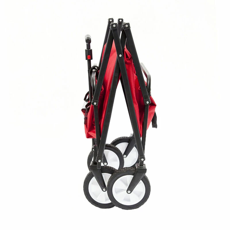 If you’re a do-it-all super-parent, you know the struggles of trying to transport your kids’ toys and day-to-day necessities around at the beach or at a sporting event. For all those non-parents, you still know the difficulty of hauling groceries from the car to your home. No matter the scenario, this utility cart can handle it. From toys to groceries, to everything in between, go with the Seina Compact Folding Outdoor Utility Cart and lighten your load. The heavy-duty, powder-coated steel frame supports loads of up to 150 lbs. Durable, 600-denier polyester fabric resists tearing and fading. Quick and easy to set up and use, this multifunctional cart folds compactly and stores easily in your trunk, garage, or closet for convenient transport. All-terrain rubber wheels make pushing over uneven ground or sand a breeze, while the telescopic pull handle with cushioned grip further facilitates easy movement. External pouches provide additional storage for your smaller essentials. Dimensions: 29.5” L x 17.9” W x 18.5” (open); 25.8” L x 4.9” W x 18.5” H (folded). One-year limited warranty.
