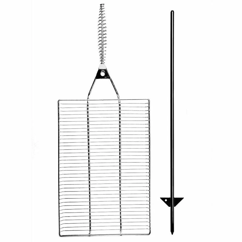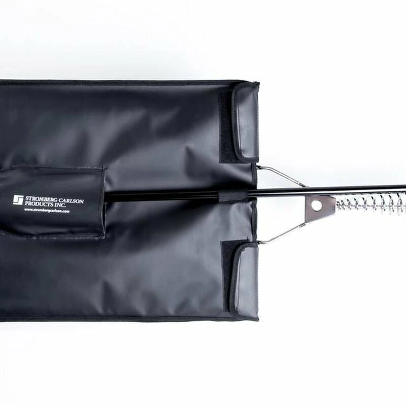 From burgers to brats, coffee to tea, the Stromberg Carlson Stake & Grill is a great way to cook when camping. The Stake & Grill measures 15″W x 22″L and includes a 0.6″ dia., 36″ long stake. All items are securely stored in a heavy-duty nylon bag. A locking handle easily slides up and down the stake to adjust the heat on your meal and allow the grill to easily pivot away from the fire for loading and unloading food. An up-turned edge keeps hot dogs from rolling off, and the grill is heavy-duty enough to perk your pot of coffee. The chrome finish cleans easily and helps provide seasons of use.