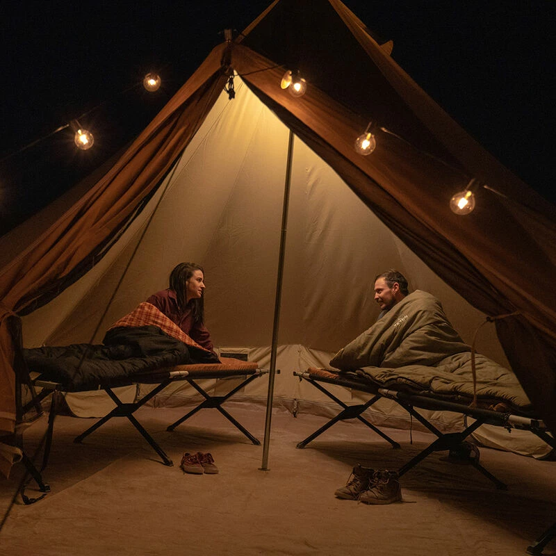 • Create a blanket or connect a second bag to make a double-wide sleeping bag for two