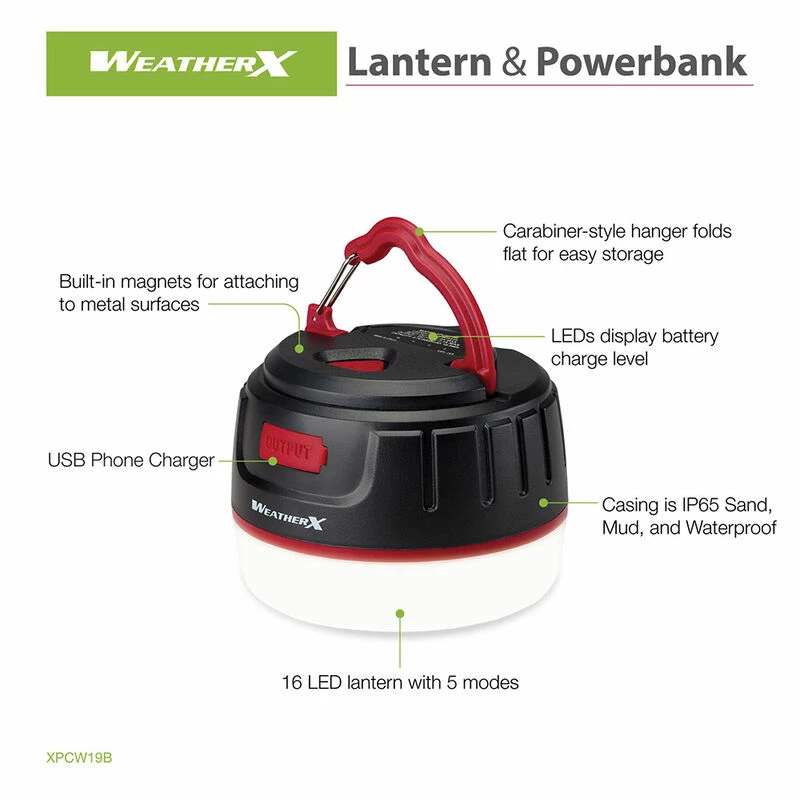 Light the way with a rugged lantern that’s up to the task. This splash-proof lantern from WeatherX can do it all. The 16-LED lantern will light your path and save the day if needed with the varied light modes (low, medium, high, strobe, SOS). A built-in USB mobile charging port will bring your phone back to life in case of an emergency and bring you peace of mind (5000 mAh battery). The 70 hour battery life (approximately) and carry handle (with built-in clip) means you can take this lantern with you, so you are always ready for an adventure.