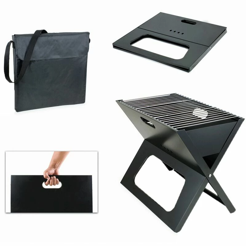 Compact and easy to assemble, the X-Grill provides a grilling surface of 203.5 sq. in. The X-Grill includes 1 electro-plated iron barbecue grill, 1 chrome-plated tri-fold cooking grate (18.5” x 11”) and 1 charcoal grate (all stored conveniently inside the folded grill), and 1 durable 600D polyester carrying tote. With the X-Grill, you can take the BBQ wherever you want to go!