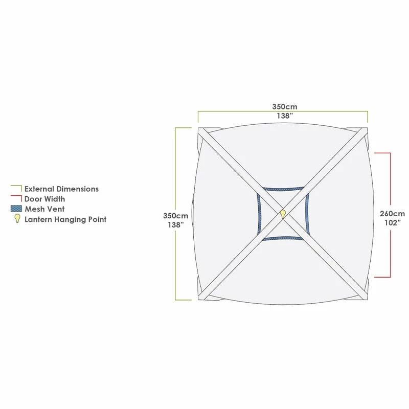 Fly Fabric: 150D Poly Oxford Walls / 300D Poly Oxford Roof