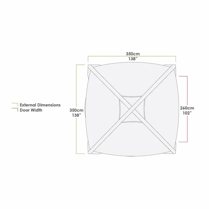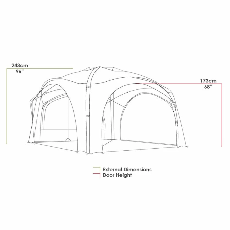- 11’6″ x 11’6″ shelter provides a large shade area and low pack size